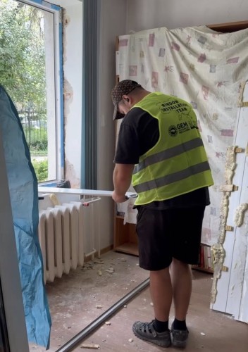 У Солом’янському районі відновлюють житлові будинки, пошкоджені внаслідок обстрілів