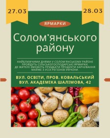 27 та 28 березня в Солом’янському районі відбудуться традиційні сільськогосподарські ярмарки