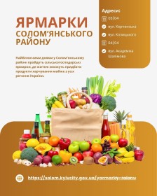 Найближчими днями у Солом’янському районі пройдуть сільськогосподарські ярмарки, де жителі зможуть придбати продукти харчування майже з усіх регіонів України.