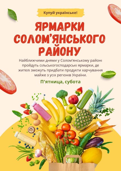 Найближчими днями у Солом’янському районі пройдуть сільськогосподарські ярмарки, де жителі зможуть придбати продукти харчування майже з усіх регіонів України.