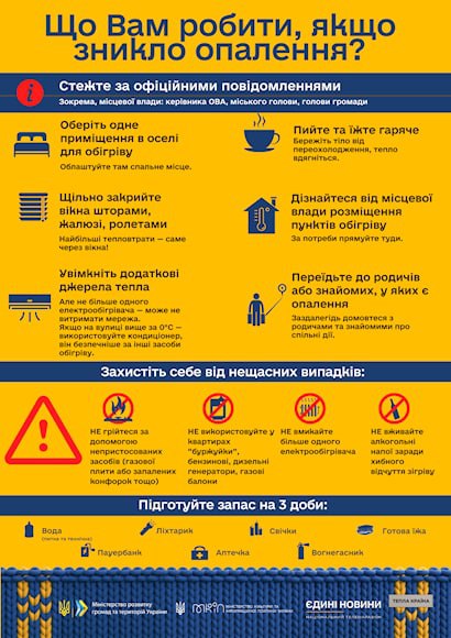 Зазначимо, що наразі Міністерством розвитку громад та територій України розпочато другий етап інформаційної кампанія «Готуймося!», присвячений підвищенню обізнаності громадян про те, як зменшити теплові витрати в домівках та як діяти, якщо зникне опалення. З цією метою Мінрегіон розробив інформаційно-графічні матеріали. Про те, як менше витрачати на тепло дивіться нижче в інфографіці.