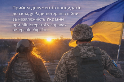 9 квітня 2026 року розпочинається прийом документів кандидатів до складу Ради ветеранів війни за незалежність України від м. Києва в Солом’янській РДА. Прийом документів здійснюється до 22 квітня 2026 року (включно) у робочі дні понеділок- четвер з 9:00 до 17:00 п’ятниця з 9:00 до 15:45 за адресою: м. Київ, прос. Повітряних сил, 41, каб. 423.