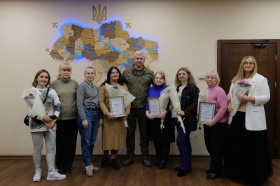 Сьогодні голова Солом’янської РДА Сергій Мовенко вручив подяки від Віце-прем’єр-міністра з гуманітарної політики України — Міністра культури України Тетяни Бережної найкращим працівникам культури району.