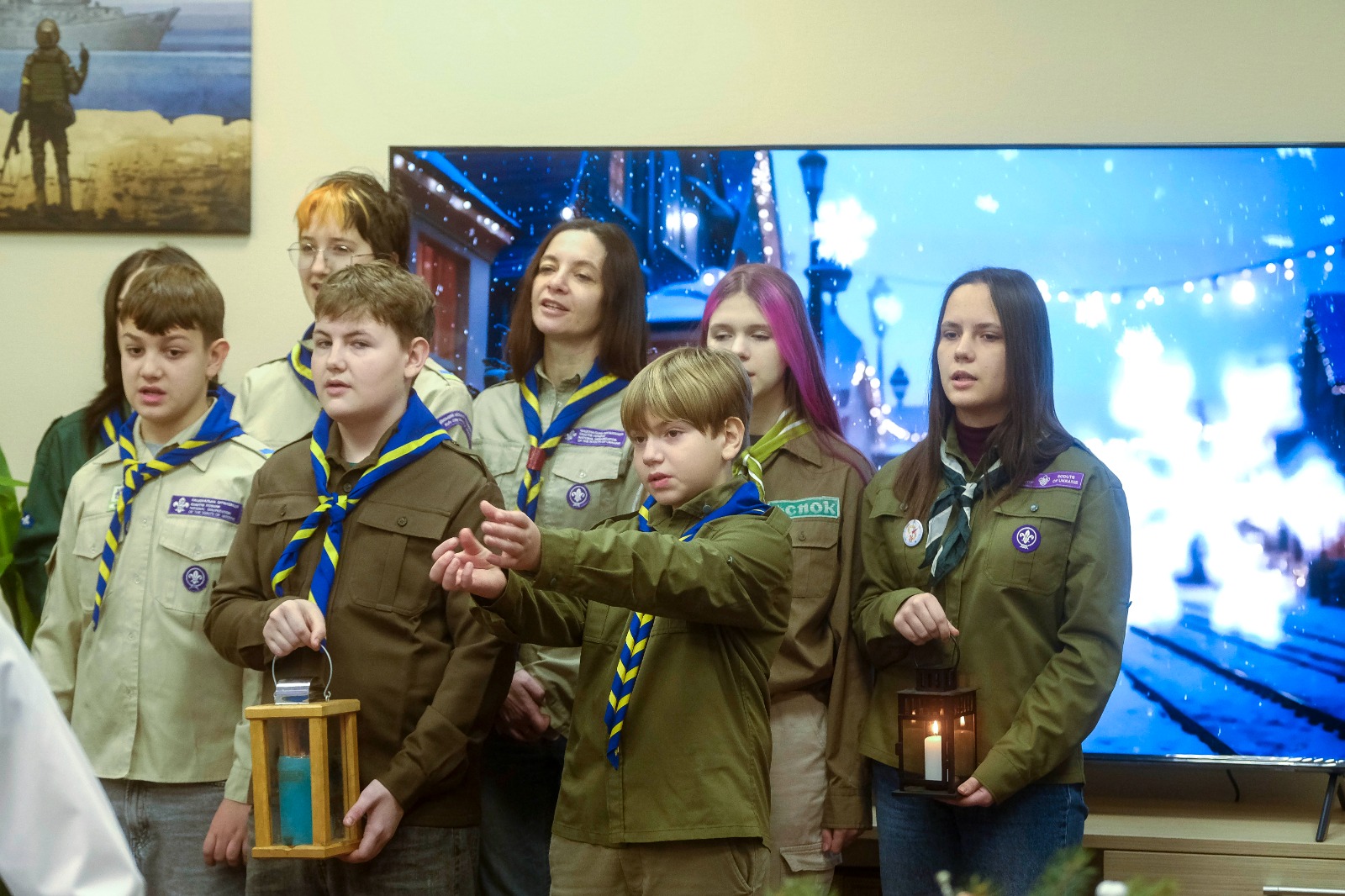 Разом з учнями гімназії до адміністрації завітали скаути «Мангуп», які передали Вифлеємський Вогонь Миру — символ добра, віри та єдності. Надалі Вогонь Миру буде передано до Департаменту охорони здоров’я та закладів охорони здоров’я міста Києва, щоб підтримати й зігріти тих, хто цього нині потребує найбільше.