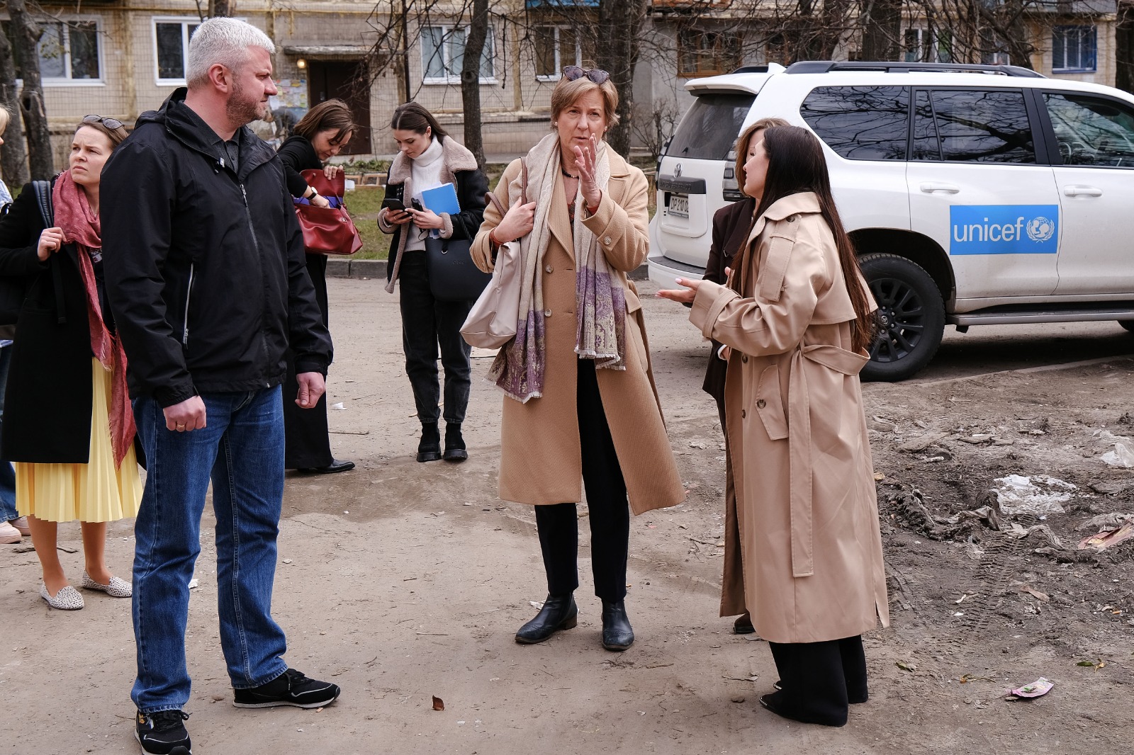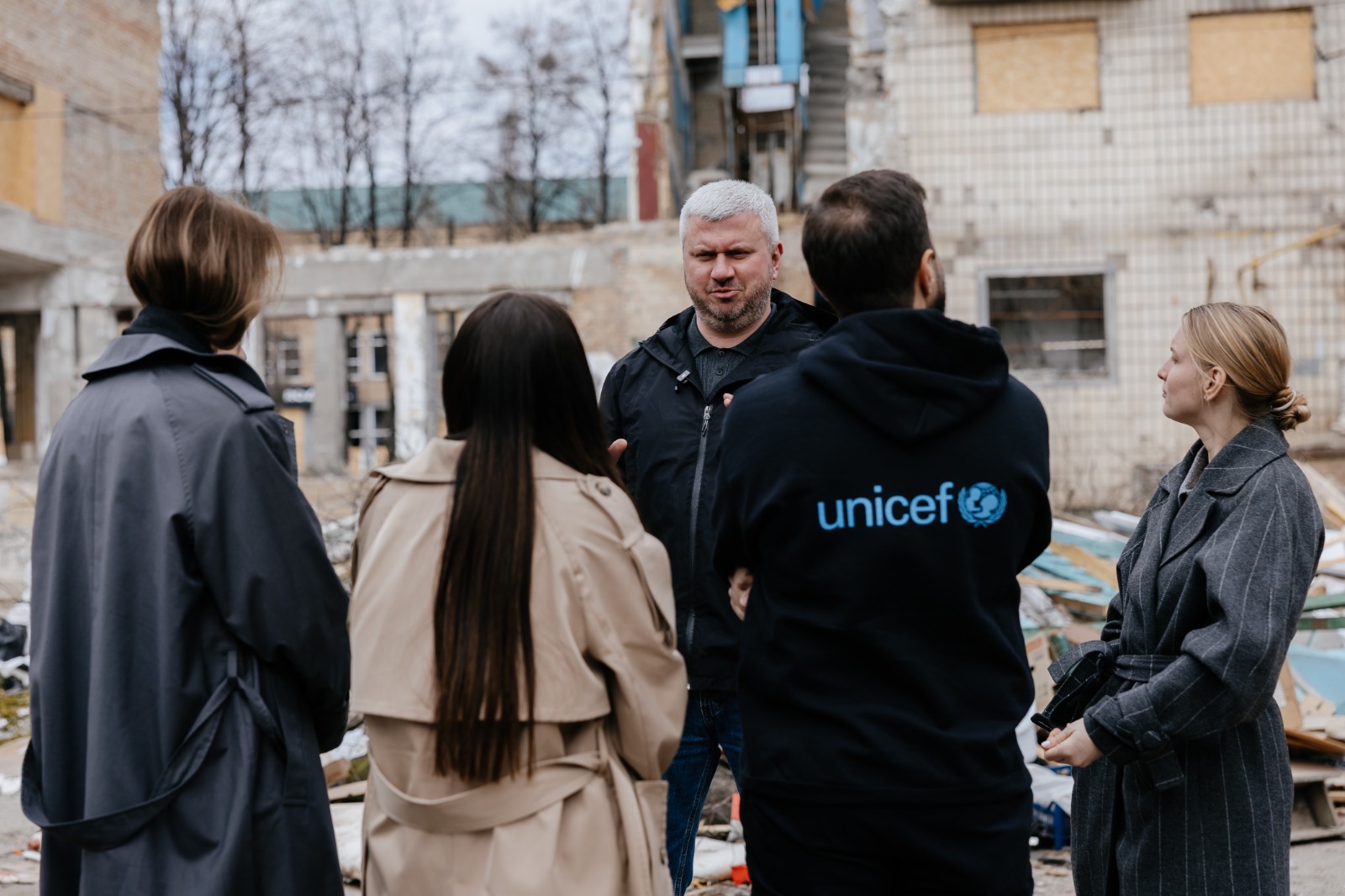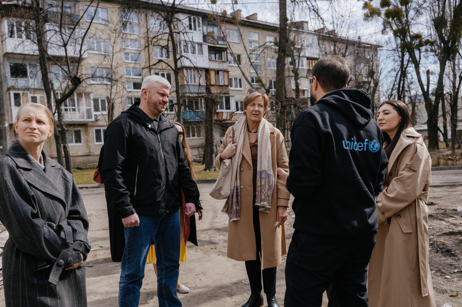 Голова Солом’янської районної в місті Києві державної адміністрації Сергій Мовенко провів зустріч із представниками Федерального міністерства закордонних справ Німеччини, Посольства Німеччини в Україні та ЮНІСЕФ на місці одного з найбільших руйнувань у районі — на вул. Вацлава Гавела, 31.