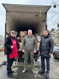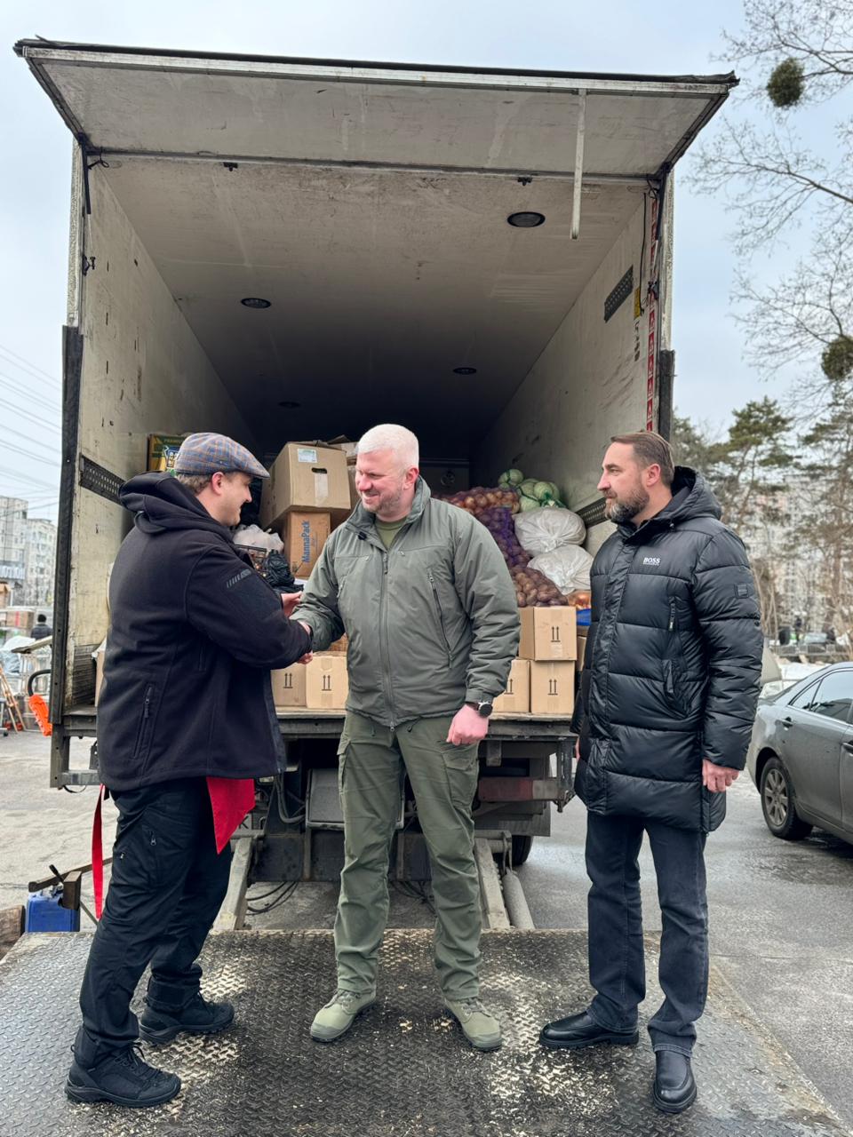 Голова Солом'янської РДА Сергій Мовенко разом із головою Володимирської РДА Юрієм Лобачем організували доставку понад 10 тонн продовольчої допомоги, яку надали фермерські господарства та небайдужі мешканці Волині.