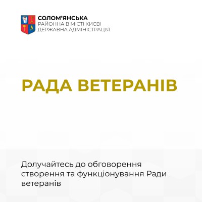 Солом’янська районна в місті Києві державна адміністрація розпочинає комунікацію з ветеранами району для створення Ради ветеранів.