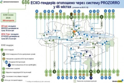 2018 рік став проривним для розвитку енергосервісу (ЕСКО) в Україні. Так, тільки за рік укладено 210 ЕСКО-договорів на суму контрактів 218 млн грн, що у 10 разів більше, ніж у 2016 році. Проекти реалізуються у 12 областях України.