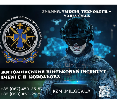 Житомирський військовий інститут імені С. П. Корольова запрошує на навчання за такими спеціалізаціями: