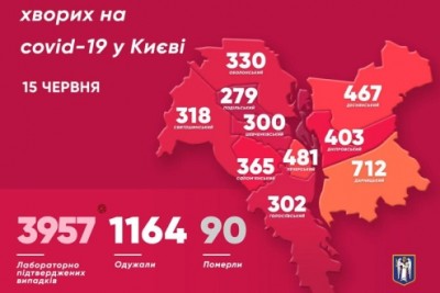 «Кількість мешканців Києва, у яких за минулу добу виявили захворювання на коронавірус, збільшилась на 53 людини. Двоє хворих померли. Захворіли, зокрема, і троє медиків. На сьогодні в столиці вже 3957 підтверджених випадків захворювання на COVID-19», – повідомив Віталій Кличко.
